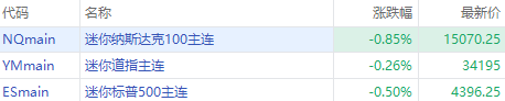 周四美股盘前,美股三大股指期货集体走弱,纳指期货 $NQmain 现跌0.85%,标普500指数期货 $ESmain 跌0.5%,道指期货 $YMmain 跌0.26%。