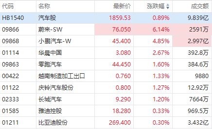 华盛资讯6月16日消息,汽车股继续走高,截至发稿,蔚来-SW涨超6%,小鹏汽车-W涨超4%,华晨中国涨超2%,零跑汽车、长城汽车涨超1%,比亚迪股份跟涨。