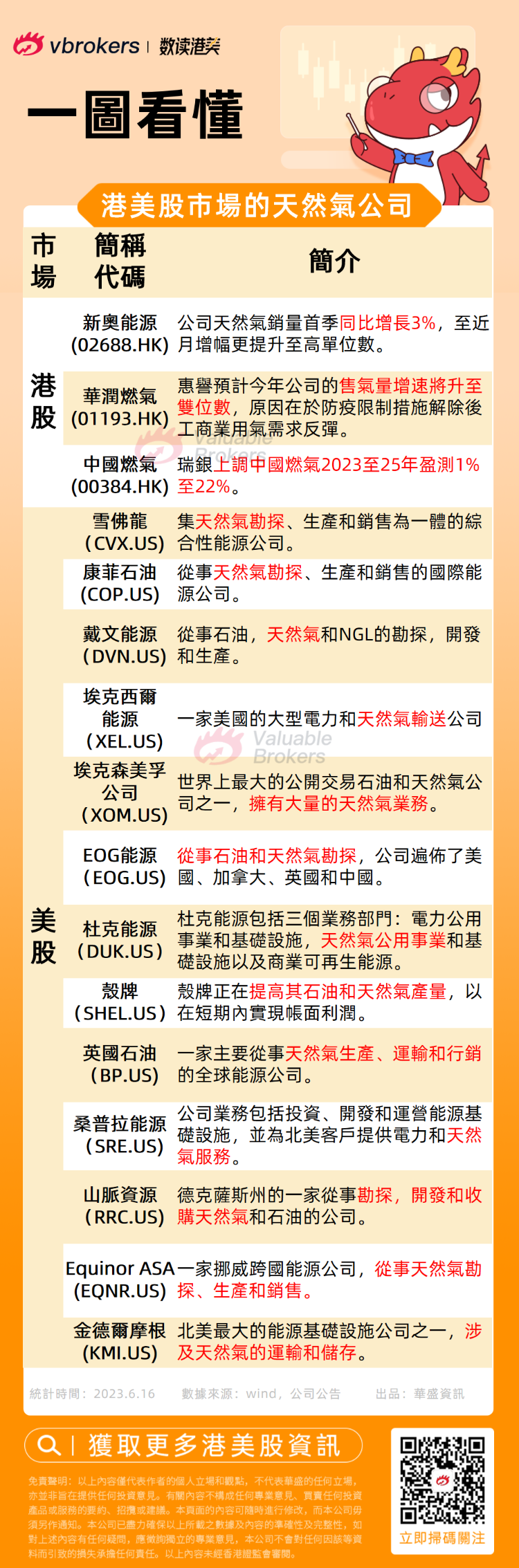 基于上述逻辑,發仔梳理了一份港美股市场中的天然气公司供投资者参考: