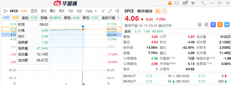 维珍银河 $SPCE 盘前一度大涨45%,本月底开启首次商飞