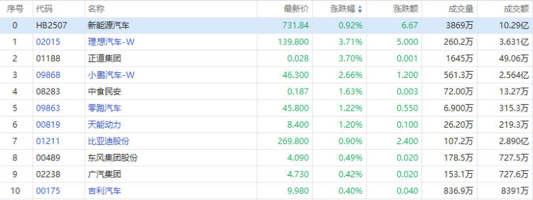 华盛资讯6月19日讯,汽车股早盘向好,理想汽车领涨近4%,小鹏汽车涨2.66%,零跑汽车涨1.22%。