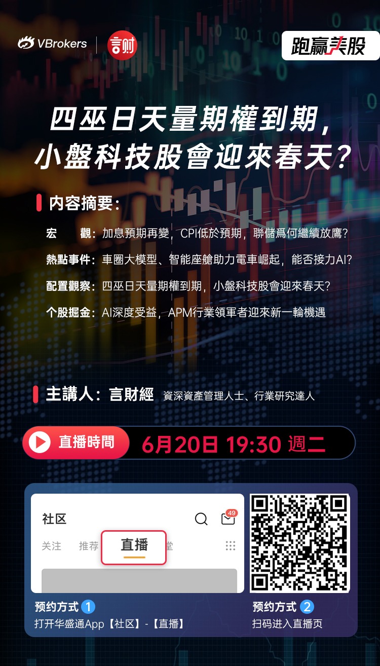 请锁定本周二晚 (6月20日) 19:30的《跑赢美股》直播,看大V言财老师解读最新美股走势,助您股市长虹! 直播期间,發仔会抽出两个打卡奖 (8层和68层) 和一个优质评论奖用户,送出华盛通端午礼盒!