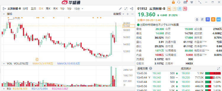 云顶新耀-B(01952.HK)飙升近30%,成交超3亿港元,近5个交易日累涨超70%。