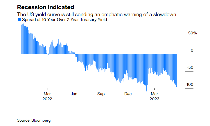 除了流动性之外,股市反弹的另一个可能的解释是,经济衰退是完全可以避免的。从表面上看,这似乎很难。传统上被视为最有力的市场经济放缓指标的收益率曲线显示,经济放缓几乎不可避免。