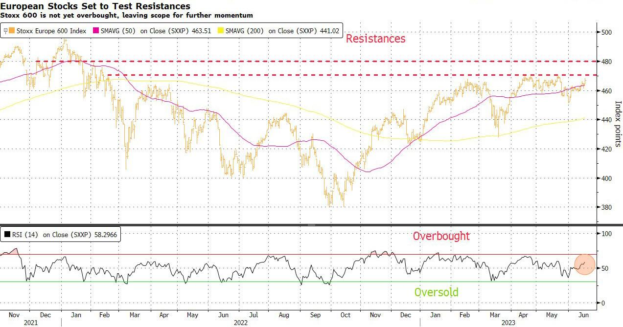 技术面显示欧洲股市目前压力不大。斯托克600指数目前交投于50日移动均线附近,高于100日和200日指标。没有哪个板块处于超买区间,而电信是唯一一个超卖的板块。