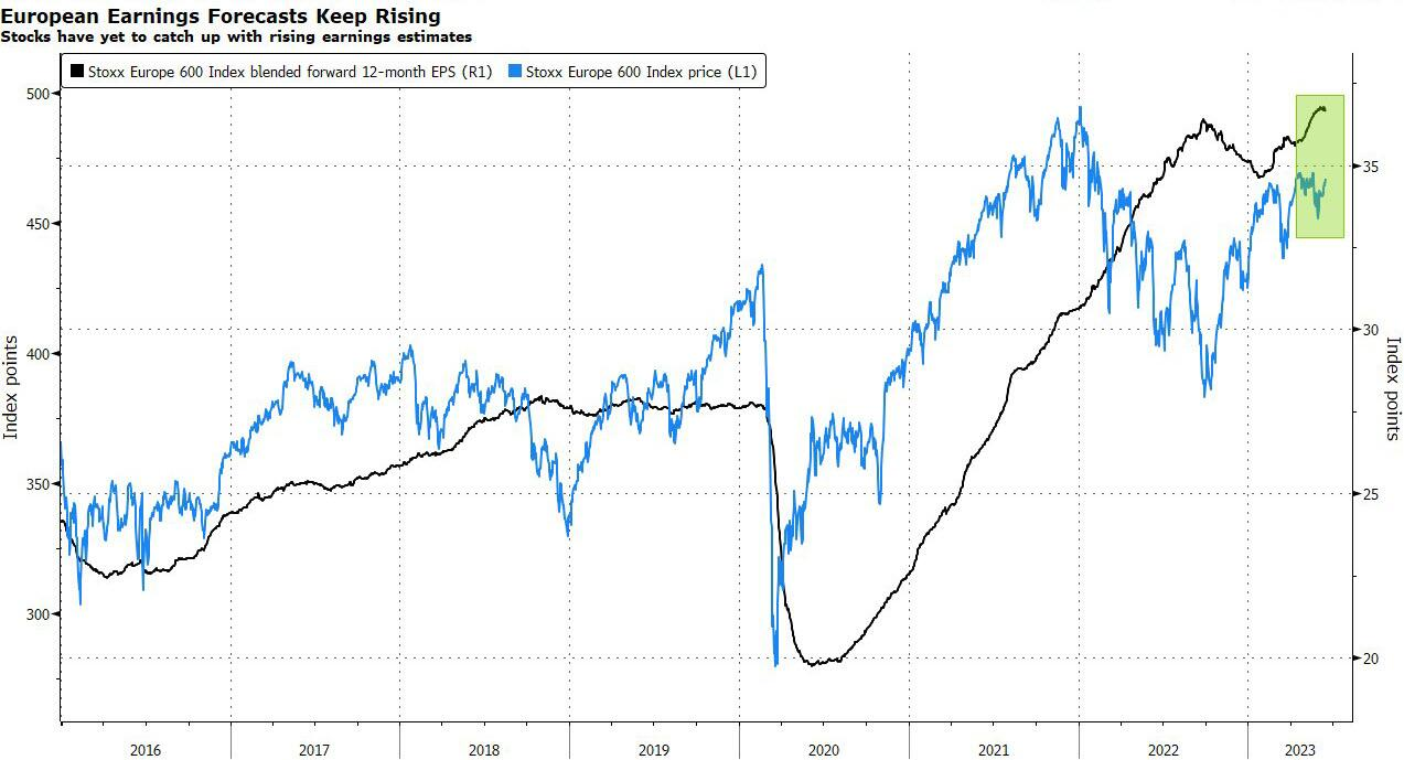 由于市场普遍乐观地认为全球经济将避免衰退,分析师们正在提高欧洲和美国企业的盈利预期。