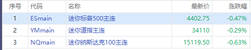 华盛资讯6月23日消息, 美股三大股指期货盘前集体走弱,纳指期货$NQmain 现跌0.63%,标普500指数期货 $ESmain 跌0.47%,道指期货 $YMmain 跌0.29%。