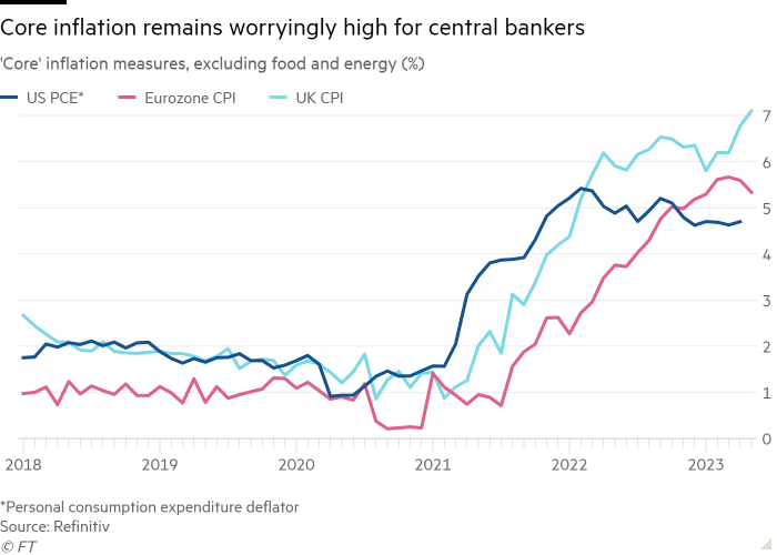后者被视为能更好地衡量潜在价格压力的指标,因此其粘性引发了人们的担忧,即各国央行将难以在不放缓经济增长的情况下实现通胀目标。