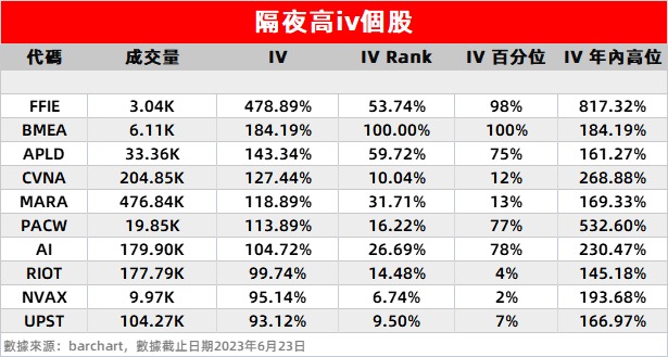 3、英伟达收跌1.9%。最近短短几周,英伟达的崛起就吸引了至少100家ESG基金,并成为这些将环境、社会和治理指标纳入投资策略的资产管理公司最受欢迎的股票之一。最新披露的文件汇编数据显示,目前共有超过1400只ESG基金直接持有英伟达,另有500只基金有间接的敞口。英伟达股价上周创下历史新高,并将2023年迄今的涨幅扩大至200%。期权方面,周内成交量平缓,持仓量小幅上升。