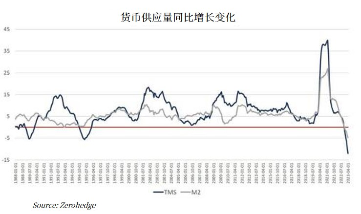 值得注意的是,米塞斯研究所指出,货币供应量增长放缓已经足以预警经济衰退,往往不需要增长转负触发萧条期。跌入负值只能说明跌幅之大,为经济增长和就业再亮红灯。