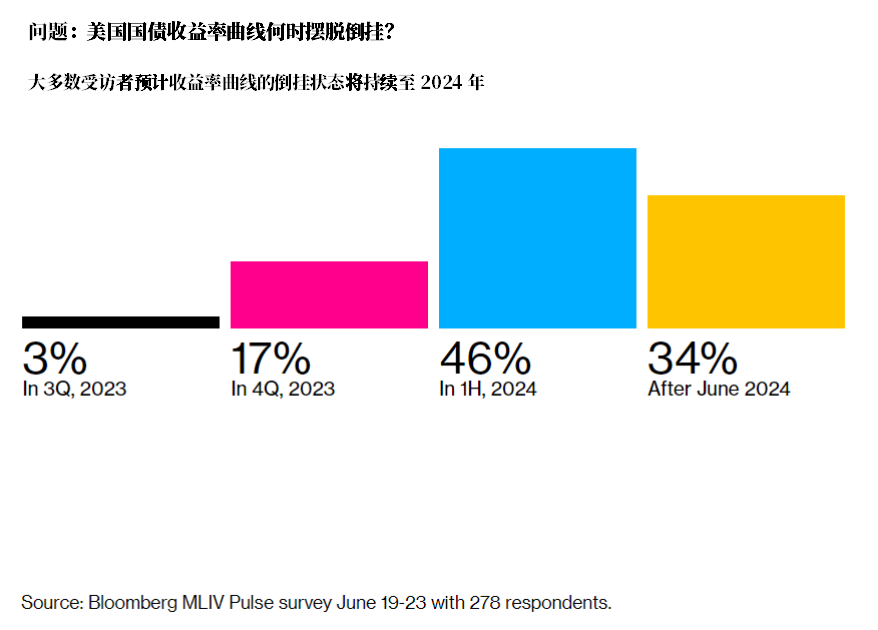 此外,该调查中80%的受访者预测美国国债收益率曲线的倒挂状态将持续至2024年,这表明过去15个月债券市场的异常波动将持续下去。