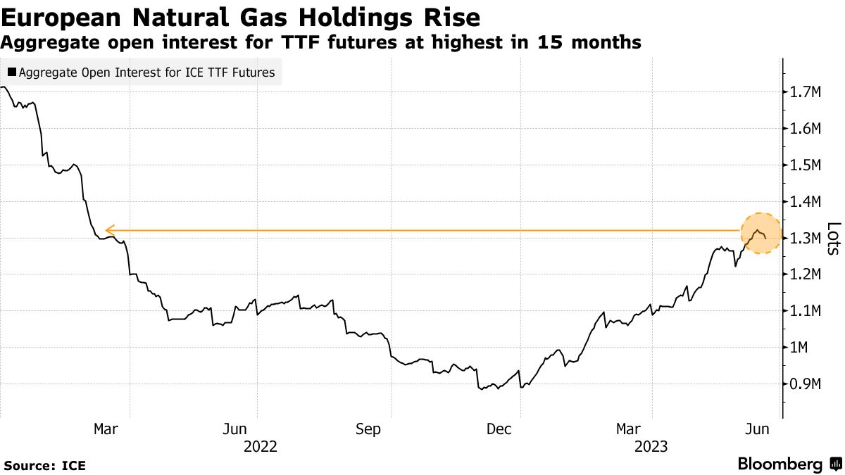 流动性也有所增强,这通常会使价格保持相对稳定。荷兰天然气交易中心(TTF)期货的未平仓合约总额已反弹至2022年3月的水平,交易量也大幅增加。