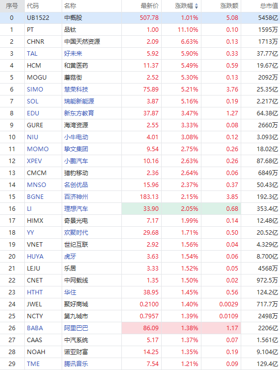 华盛资讯6月26日消息,美股早盘中概股普涨,截至发稿,好未来涨近6%,新东方教育、小牛电动涨超3%,小鹏汽车、挚文集团、百济神州、理想汽车涨超2%,虎牙、阿里巴巴、腾讯音乐等涨超1%,百度、京东、拼多多等跟涨。