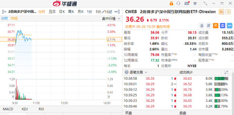 2被做多沪深中国互联网指数ETF $CWEB 涨超2%,3倍做多富时中国指数ETF $YINN 涨超1%。