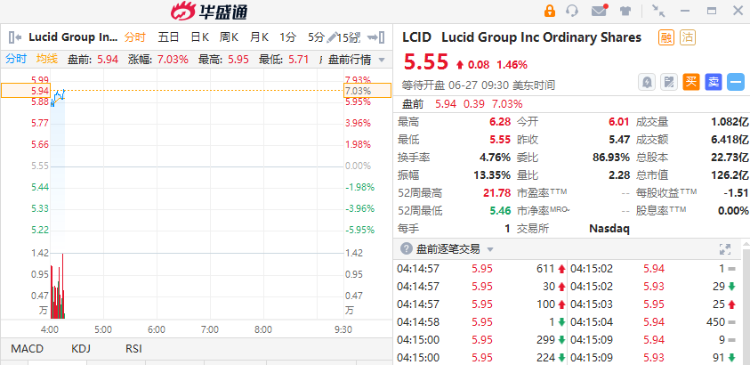 Lucid盘前续涨逾7%,此前阿斯顿·马丁宣布将与Lucid合作生产电动汽车。