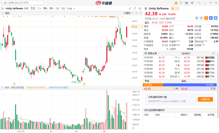 今年以来,全球市场围绕AI的投资狂潮愈演愈烈,任何涉及AI领域的公司股价都出现了不同程度的上涨。而在这一消息的刺激下,Unity股价周二一路走高,最终收涨15.38%,报42.38美元。