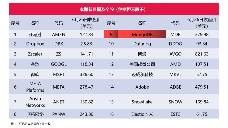 不仅是MongoDB,很多在AI时代作为“卖铲人”的龙头企业都具备强大潜力,AI越火,这些公司的业务也会越好,它们都有可能成为各自领域的英伟达,本期《跑赢美股》特意挑这家公司来分析,也是坚持了“授人以鱼不如授人以渔”这一理念,从而和各位投资者加深交流,让大家都能炼成属于自己的优质投资逻辑。那么下周二19:30,我们不见不散!