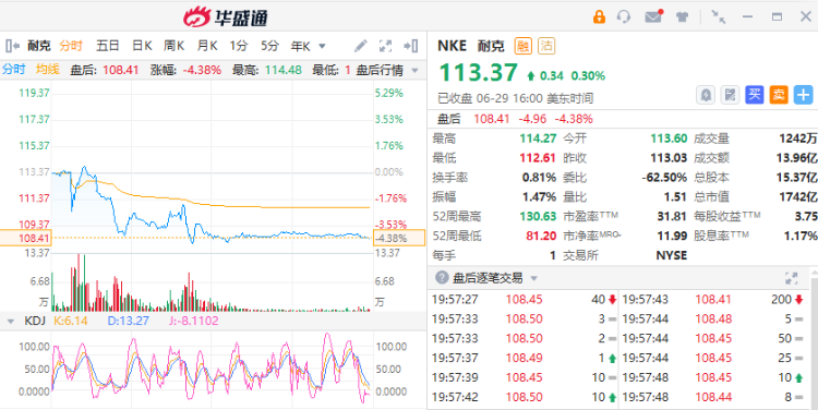 由于毛利率的下降影响了业绩,耐克(NKE.US)公布的第四财季利润三年来首次不及市场预期。受此影响,该股盘后下跌逾4%。今年迄今为止,该股股价累计下跌约3%。