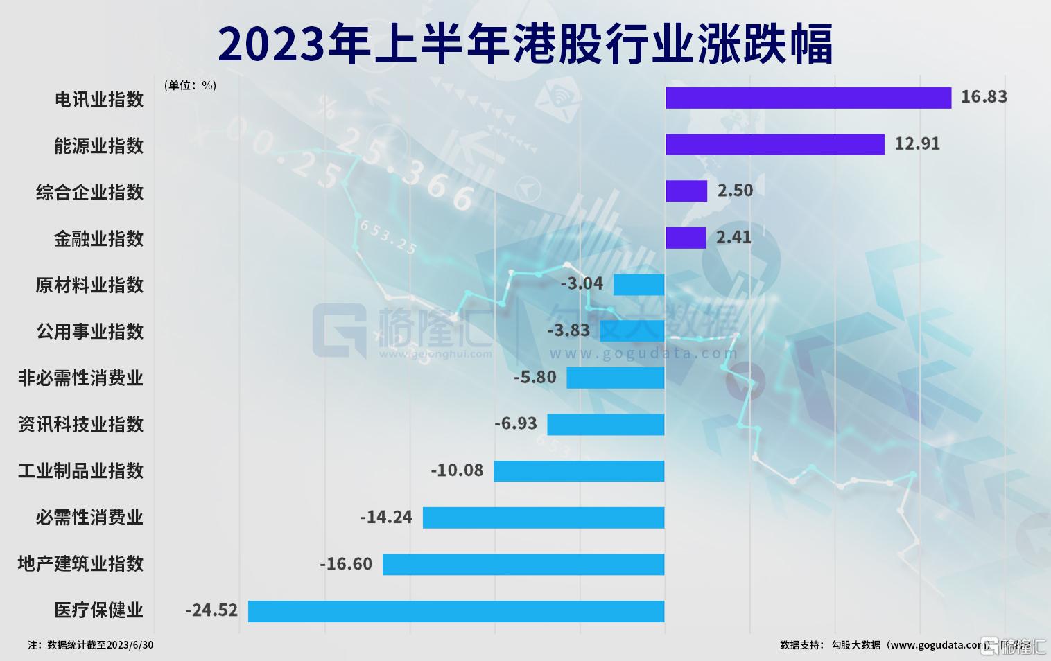 两条主线AI和中特估也在港股有所体现,港股能源和电信运营商表现亮眼。行业表现上,今年上半年,港股表现最好的行业为电讯(16.83%)、能源(12.91%)、综合企业(2.5%),表现最差的行业为医疗保健(24.52%)、地产建筑业(16.6%)、必需性消费业(14.42%)。