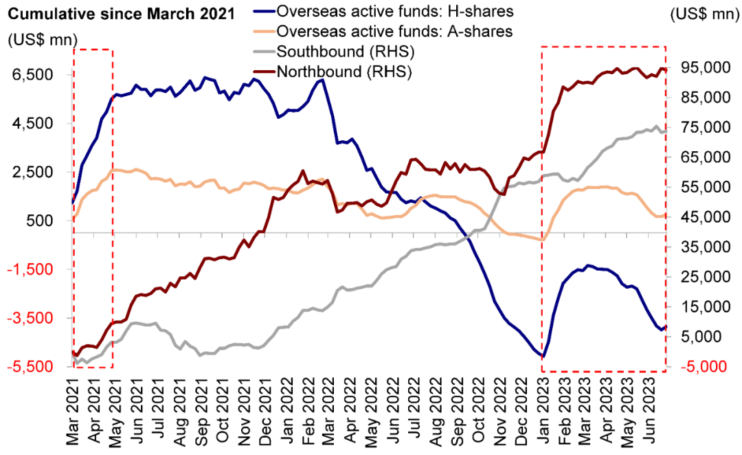 图表:时隔七周后,海外主动型基金上周再度流入海外中资股市场