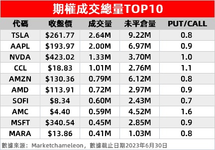 2、苹果上周五收高2.31%,股价再创历史新高,总市值首次站上3万亿美元关口。花旗此前将苹果目标股价上调至240美元。期权方面,隔夜总成交量大幅增至200万张;其中看涨期权成交量超120万张,成交额近5亿美元,持仓量在过去5天内上涨了4.5%。