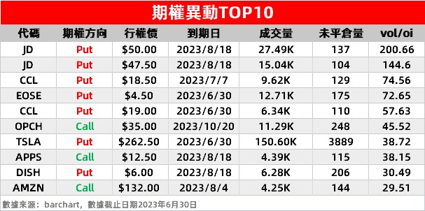 1、京东在8月18日到期、行权价在50美元的看跌期权获得市场资金涌入,该期权在隔夜收涨2.91%,成交量达2.75万张。
