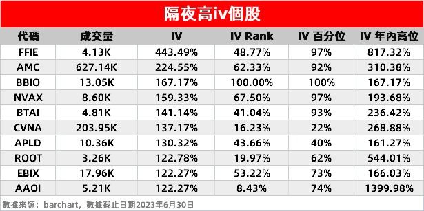 1、法拉第未来上周五隐含波动率小幅下降,仍居高IV个股榜首位,成交量上升至约4130张。AMC院线目前隐含波动率为224.55%,成交量超62万张。