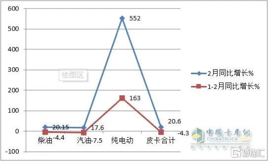 一是,国内对新能源汽车的追捧,让电动皮卡的增长潜力得以释放;根据乘联会的数据,2023年2月,新能源(纯电动)皮卡销售326辆,去年同期仅为50辆;1-2月,新能源(纯电动)皮卡累计销售702辆,同比大涨163%。