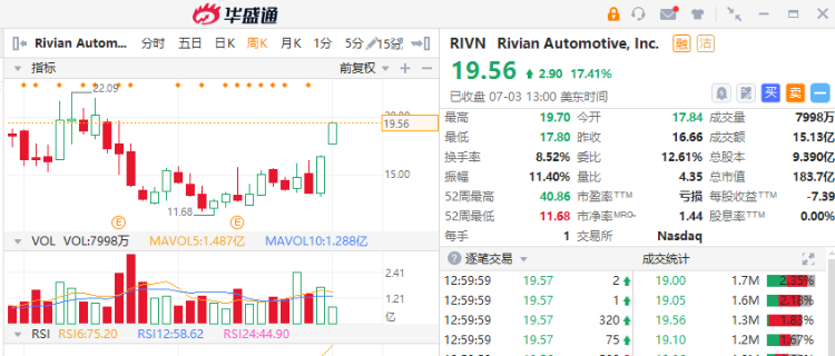 Rivian隔夜暴涨17%,公司将扩大为亚马逊生产的一款电池电动面包车在欧洲的交付量,这将是这家电动汽车制造商在美国以外的首次商业出货。Rivian未来几周将在包括慕尼黑、柏林和杜塞尔多夫在内的德国城市推出300多辆插电式送货车。