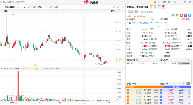 操作建议:可于现价 0.54港元附近吸纳,中长线可见0.81港元,跌穿0.45港元止蚀。