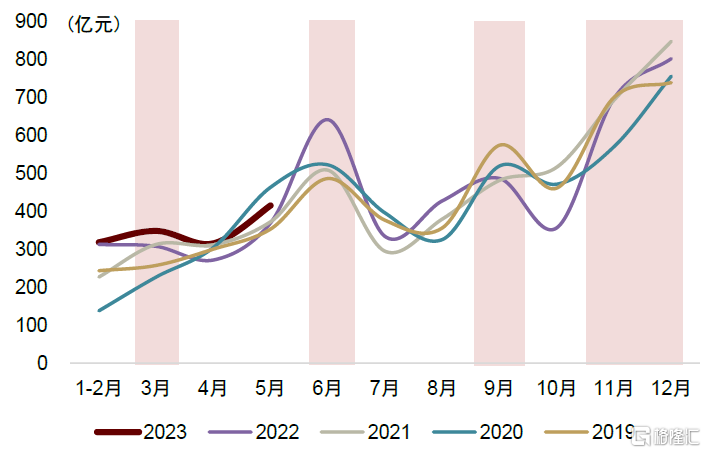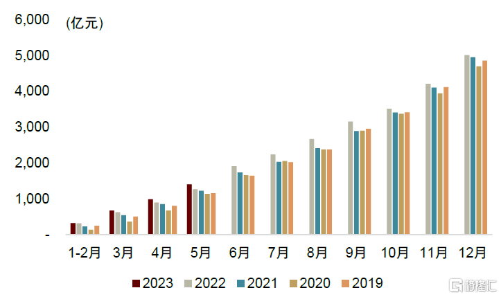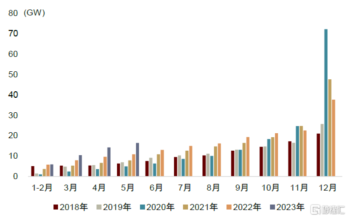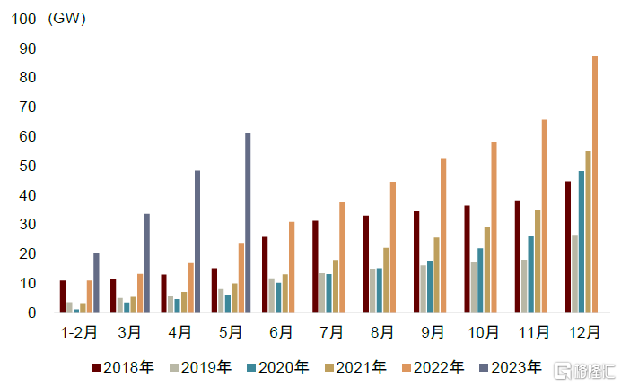 图表:2018-2023YTD光伏当月累计新增发电容量