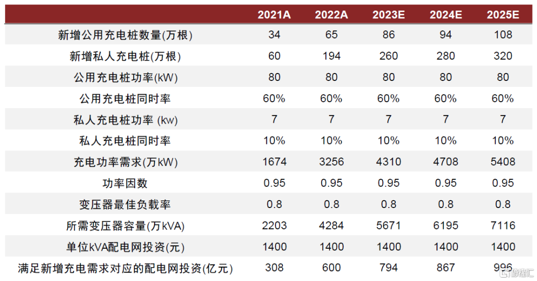 公私桩增长带来存量配网增容改造需求,2025年新增充电需求对应配网投资高达1000亿元。充电桩接入带来经营性配电网新增或更换原有变压器、线路、电缆等相关设备的增容改造需求。根据中金研究院在报告《新型电力系统投资:电网最后一公里的“立”与“破”》中的测算,未来三年每年满足新增充电需求对应的配电网投资将高达800~1000亿元,约占当前电网实际年度投资的20%。