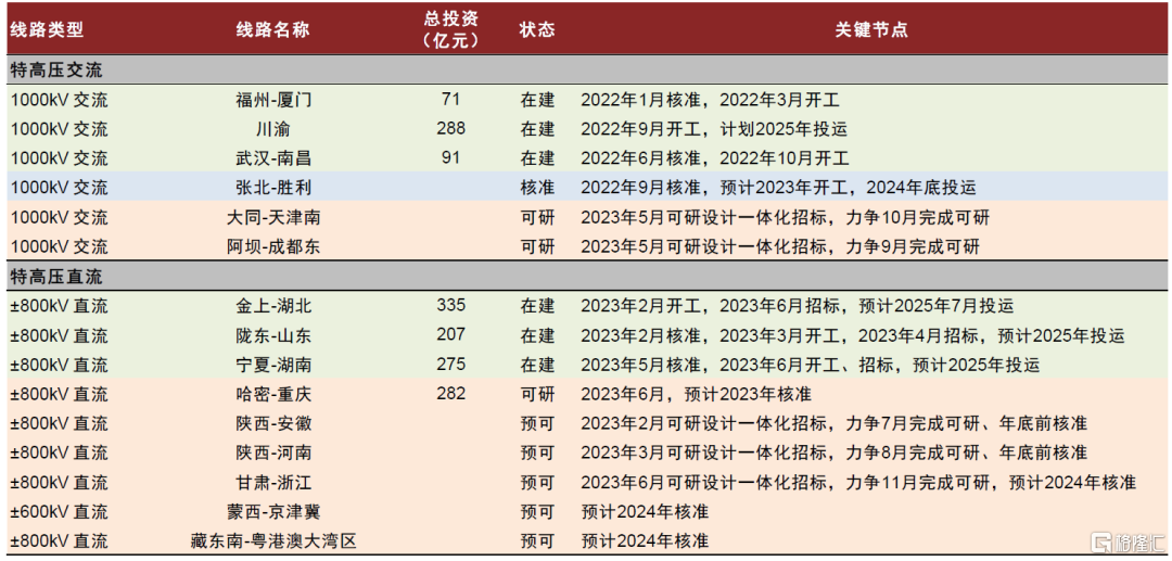图表:特高压线路规划、前期、建设进度(截至2023/06)