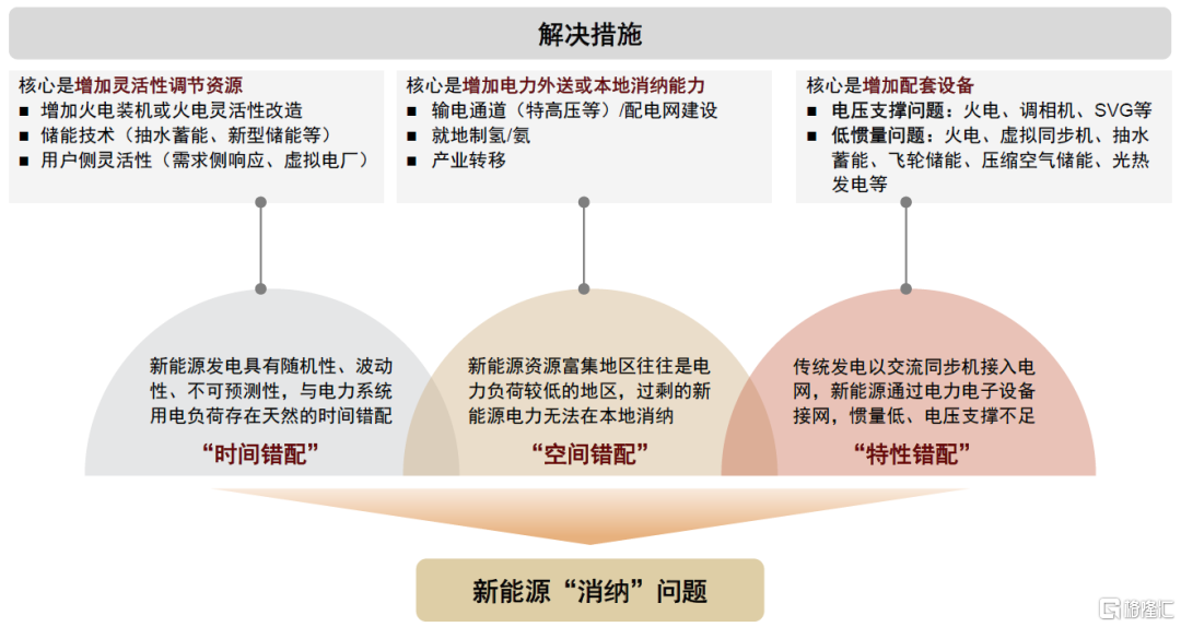 新能源消纳本质为错配问题,解决消纳问题或带来系统成本上涨。我们可以将新能源消纳问题拆解成三个“错配”——时间错配、空间错配、特性错配,需要通过增加灵活性调节资源、加大电网投资、增加配套设备等方式解决。根据国网能源研究院[2],新能源发电的系统成本包括灵活性电源投资/改造成本、平衡成本、运行损失成本和电网成本四部分,以青海省为例,到2025年风光的系统成本或达到0.325元/kWh。