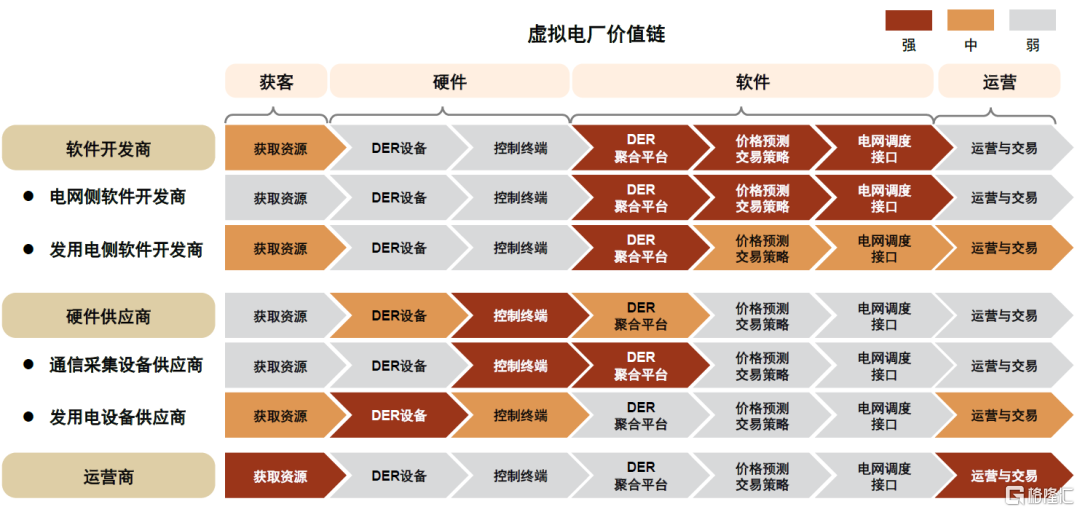 图表:虚拟电厂业务参与主体及核心竞争优势对比