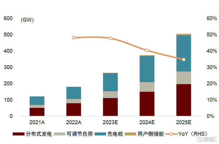 图表:虚拟电厂可聚合资源空间测算(2021A-2025E)