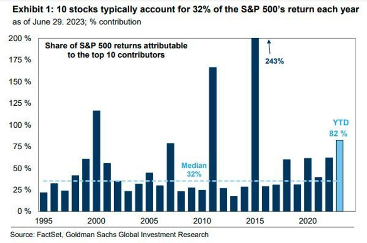 此外,以今年为例,标准普尔500指数今年迄今15%的回报率中,贡献最大的10家公司贡献了大约12个百分点。”他们补充道。