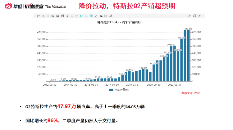 数据显示,特斯拉在Q2生产了47.97万辆车,交付了46.16万辆,创下历史新高。特斯拉的产量令人惊叹,接近48万辆,如果上半年的趋势继续,全年交付量有可能达到190万甚至200万辆。Q2交付数据同比增长了83%,显示出特斯拉的销量刺激策略确实有效。