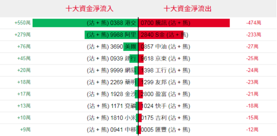 淡仓(认沽证及熊证)方面,周三港交所、阿里巴巴等相关淡仓分别约550万、279万港元资金净流入;腾讯控股、SPDR金ETF等相关淡仓则分别约474万、233万港元资金净流出套现。