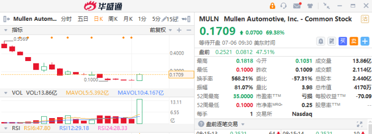 电动车企 $MULN 盘前暴涨47%,公司拟打击裸卖空活动