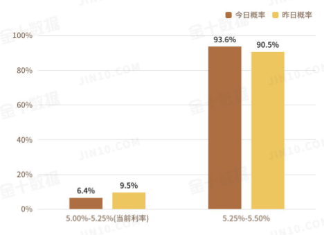 7月美联储加息25bp预期略有上升。据CME“美联储观察”:美联储7月维持利率在5.00%-5.25%不变的概率为6.4%,加息25个基点至5.25%-5.50%区间的概率为93.6%;到9月维持利率不变的概率为4.6%,累计加息25个基点的概率为69.2%,累计加息50个基点的概率为26.2%。