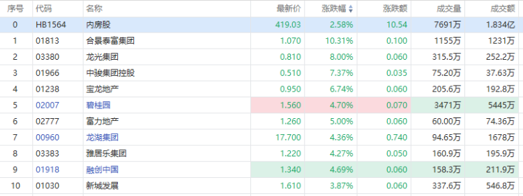 7月11日讯,港股内房股开盘直线拉升,合景泰富集团现涨超10%,龙光集团涨8%,富力地产涨5%,碧桂园、龙湖集团、融创中国均涨超4%。