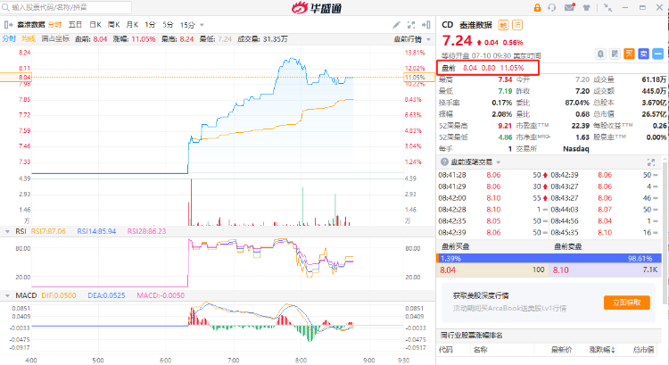 秦淮数据美股盘前拉升,现涨超11%,报8.04美元每股。