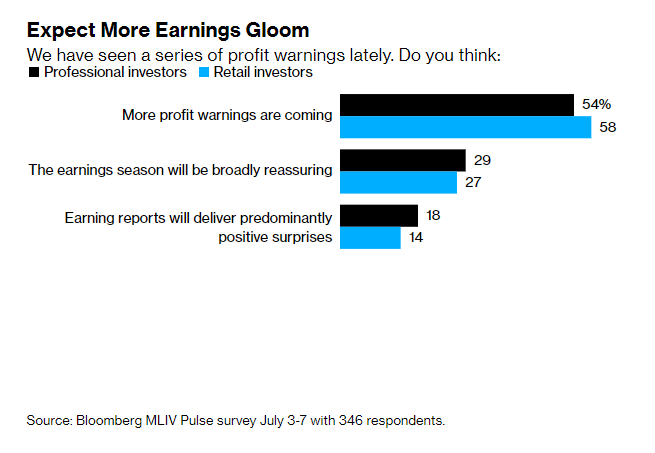 德意志银行策略师说,过去10年财报季通常对股市有利,但在MLIV Pulse的346名受访者中,55%的人称,即将到来的财报季将对股市不利。