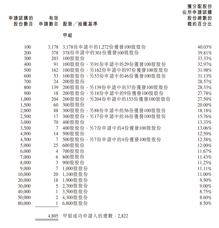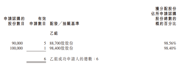 根据香港公开发售初步提呈发售的香港发售股份已获超额认购,相当于香港公开发售项下初步可供认购的香港发售股份总数约3.08倍。香港公开发售项下发售股份的最终数目为108.39万股发售股份,占全球发售项下初步可供认购的发售股份总数的10%。