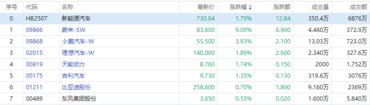 今日开盘,恒生指数高开1.04%,报18671.42点,恒生科技指数涨1.69%。盘面上,造车新势力走高,蔚来汽车大涨9%,小鹏汽车涨4%,理想汽车涨2%。内房股高开,碧桂园涨超3%,富力地产、万科企业涨超1%。