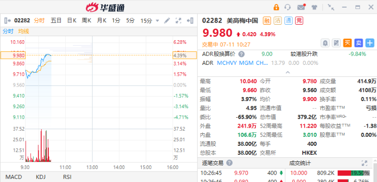 7月11日讯,博彩股早盘集体上涨,截至发稿,美高梅中国涨超4%,银河娱乐、永利澳门、新濠国际发展、金沙中国涨超3%,澳博控股涨超2%。