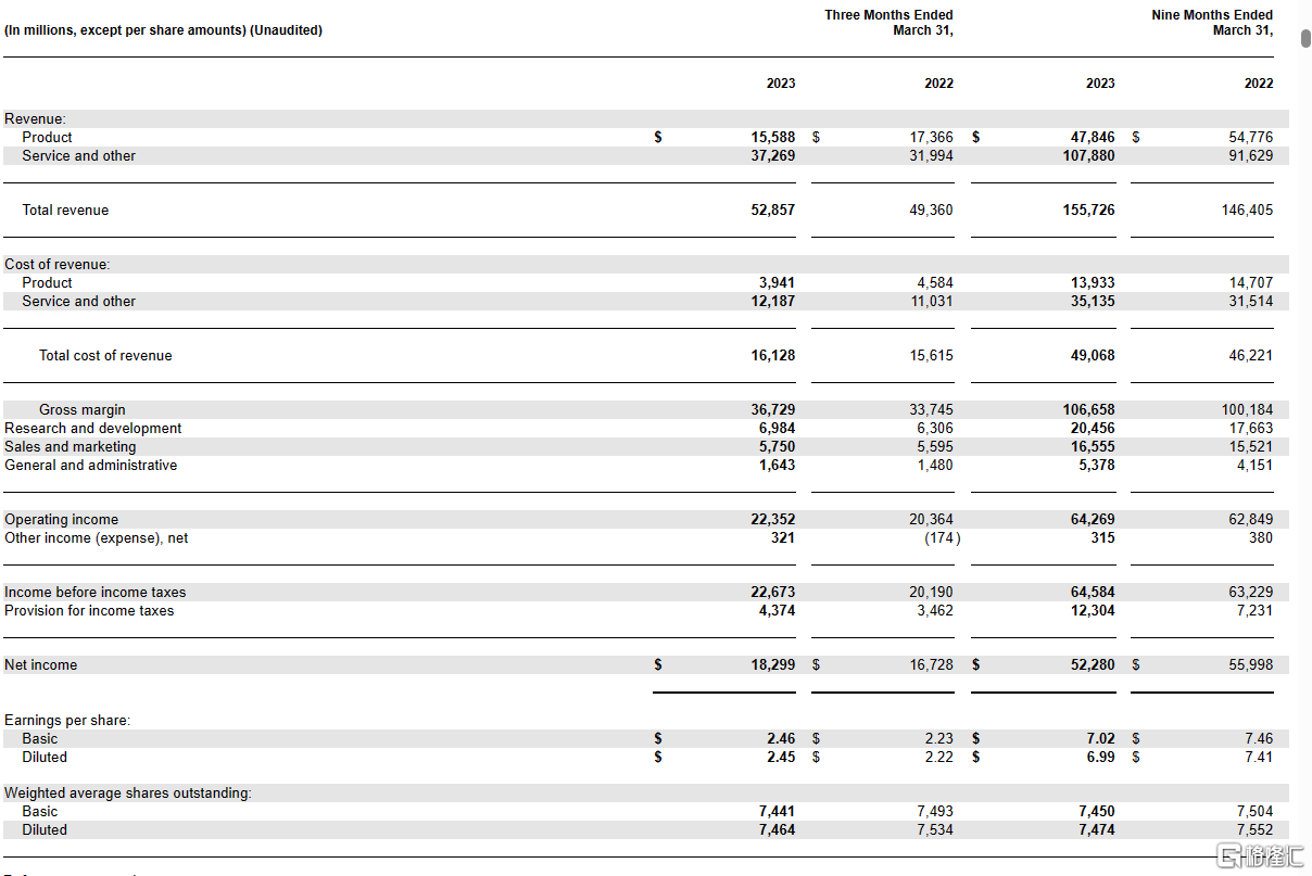 从此前的财务数据来看,微软2023财年第三财季的净利润达到了183亿美元,同比增长了9%;营业收入为528.6亿美元,同比增长7%。其中智能云领域表现强劲,而其他个人计算业务营收却下降。