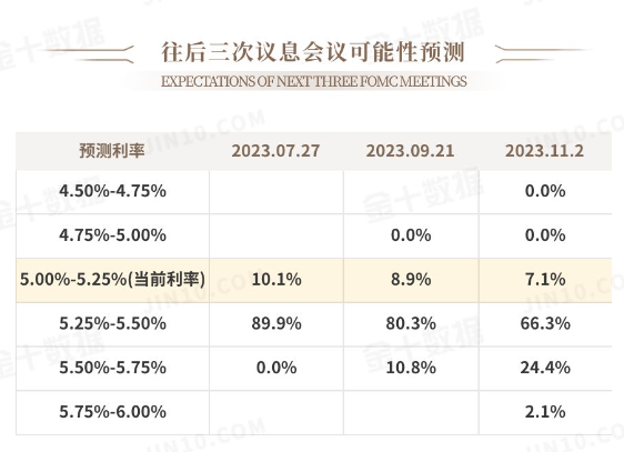 市场普遍预计7月FOMC会议将再次加息,但数据可能会对9月的会议产生影响,这取决于下个月的劳动力和通胀数据。
