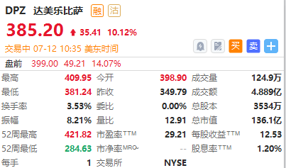 其他热股方面,达美乐披萨涨逾10%,公司与Uber Eats和Postmates达成合作协议。